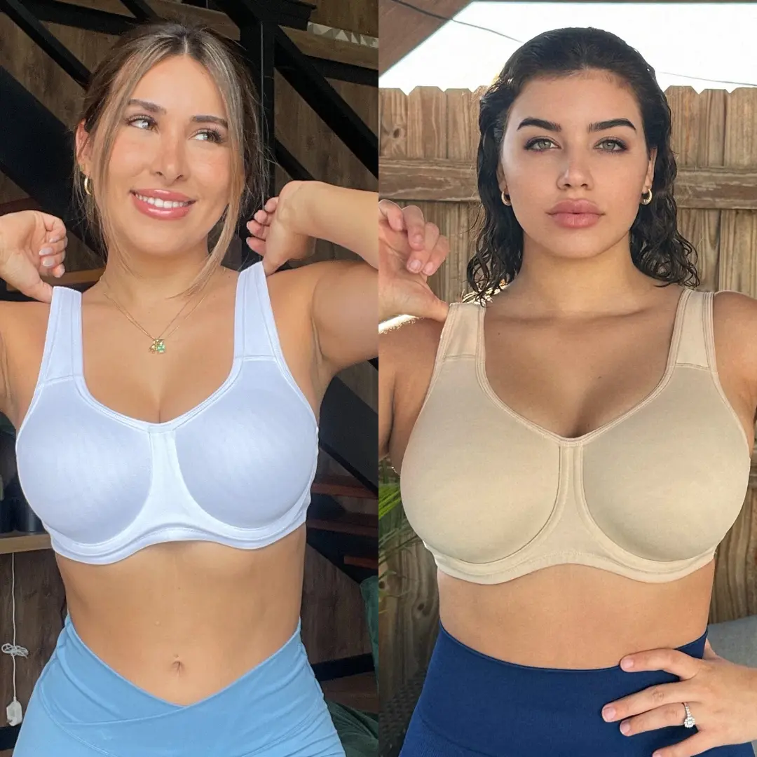 This bra is a must have for anyone with large breasts. So comfortable and the underwire on the outside is a game-changer, no side pokes or uncomfortable rubs. This style is great for high intensity sports and holds everything in place with comfort and style. The middle underwire does ride high on the chest, but I love the extra coverage with no uni-boob. I actually love this style so much that I wear it as my everyday bra quite often.